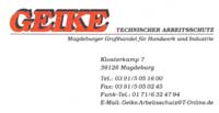 Geike, Technischer Arbeitsschutz, Großhandel für Handwerk und Industrie, bietet Arbeitsschutz von Kopf bis Fuß, Fallschutzmittel sowie Erste Hilfe - Artikel und Beratung und Service.